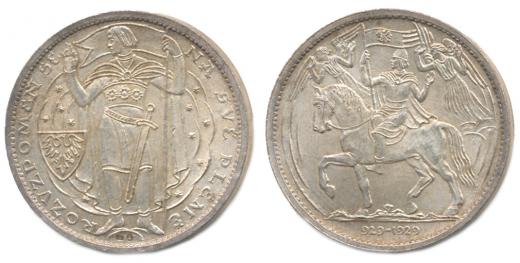 Větší medaile na milénium Sv.Václava, 1929 Sv.Václav na koni, andělé, letopočet / Sv.Václav s praporcem, znak, opis, Punc.987, Ag 40 mm, 30.1 g