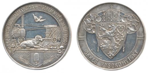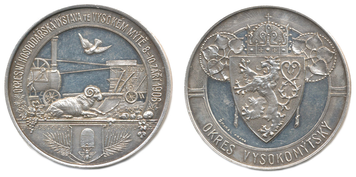 Šmakal - okresní hospodářská výstava 8.-10.9.1906 Hospodářská zvířata a stroje, opis / korunovaný český lev, opis Sign.Šmakal Praha, Punc.na hr., Ag 46 mm, 24,67 g