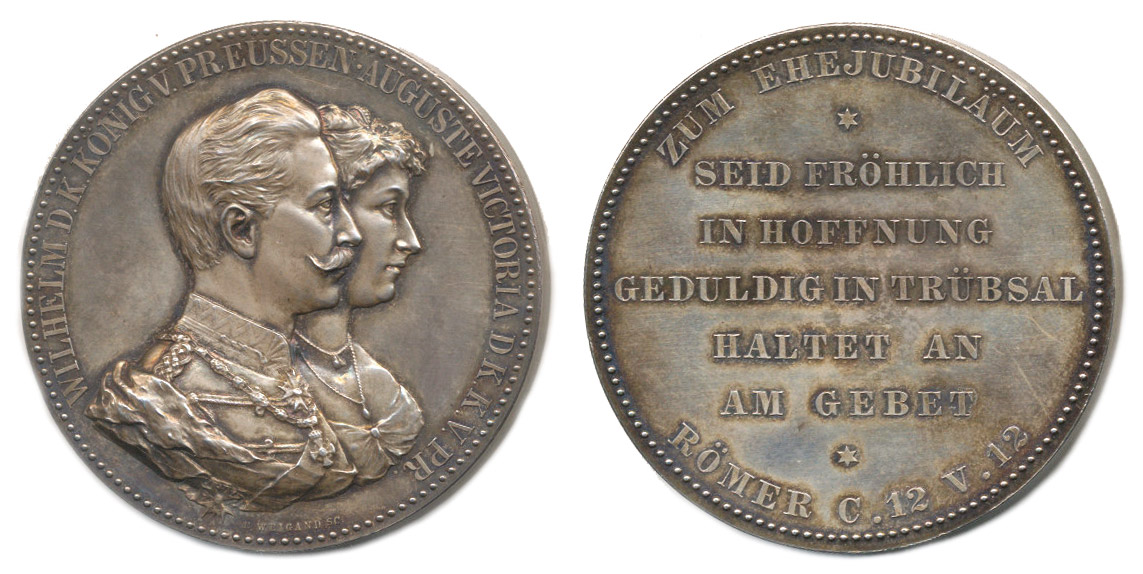 Vilém II. a Augusta Victoria - výročí sňatku, 1912 Dojportrét zprava, opis / 7-řádkový nápis, opis, E.WEIGAND S.C., Nepunc., Ag 45 mm, 50.73 g_orig.etue