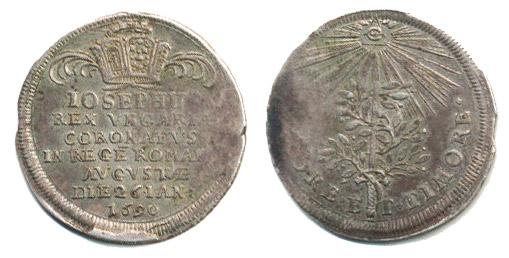 Menší peníz na korunovaci na římského krále, 26.1.1690 v Augsburgu, meč ovinutý vavřínovou ratolestí, opis / pod korunou 7řádk.nápis, Nesign., Ag 20 mm, 1.41 g, Nov.X/B-35b, Mo.1232_dr.hr.