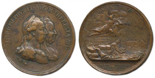 F.Würth - medaile na podporu zemědělství, hornictví a obchodu v Sedmihradech v r.1769, dvojportrét zprava, opis / zemědělec, horník a obchodní zboží pod letícím Merkurem, 3řádk.nápis v úseči, opis Sign., Bronz 59 mm, 53,16 g, Mo.-, LG.XIV/245, We.8014, SD.220_dr.ned. R!