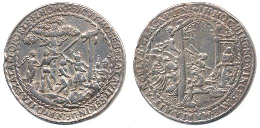 Náboženské med.: morový tolar se zvěstováním Panny Marie