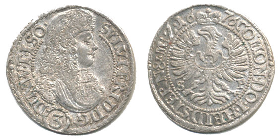3 Krejcar 1676 SP, SJ.219/58, Fr.2296, Kop.6210_dr.ned.