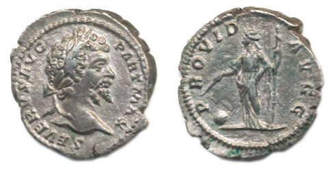 AR Denár, Rv:"PROVID.AVGG", stojící Providentia zleva s globem u nohou, S.1683, C.586_dr.okr.raž.