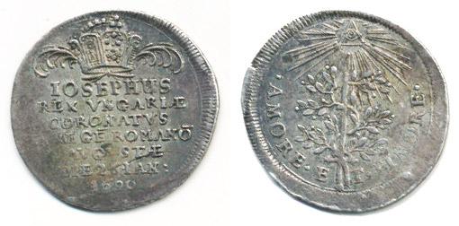 Menší peníz na korunovaci na římského krále, 26.1.1690 v Augsburgu, meč ovinutý vavřínovou ratolestí, opis / pod korunou 7řádk.nápis, Nesign., Ag 20 mm, 1.89 g, Nov.X/B-35b, Mo.1232, Ho.2422 _dr.ned. R!