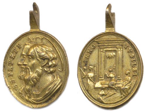 Nesign. - medaile na Svatý rok 1700 Dvojportrét sv.Petra a Pavla zleva, opis / otevírání zazděné Svaté brány ANNO - IVBILEI, Mosaz 20x23 mm_orig.kolmé ouško