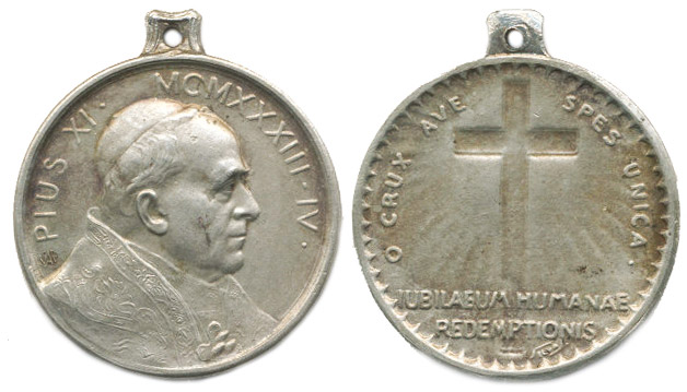 Silva S. - medaile na Svatý rok 1933 Poprsí papeže zprava, opis / zářící latinský negativně ražený kříž, 2řádk.nápis v úseči, opis, Sign., Ag 25 mm, 6,97 g_orig.raž.ouško