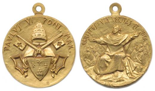 Nesign. - pontifikační medaile b.l. (1963) Papežův osobní znak, opis / výjev kázání na hoře, opis Bronz 32 mm_orig.raž.ouško