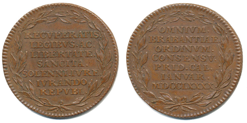 Žeton na nezávislost Brabant 1790#Br 7řádk.nápis ve věnci / 7řádk.nápis ve věnci Bronz 33 mm, 12,88 g, Mo.2195(Ag), LG.XIV/1066