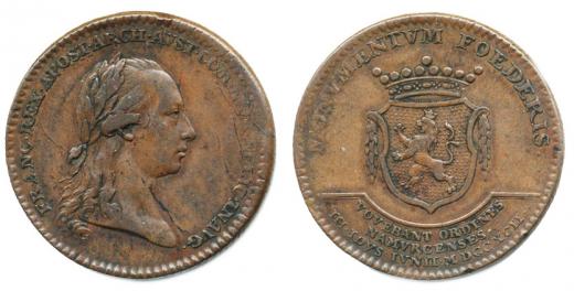 Medaile na holdování v Namuru, 1792#Br Portrét zprava, opis / korunov.znak, opis, 3řádk.nápis v úseči Nesign., Bronz 34 mm, Nov.XVII/F-1c, LG.XIV/1185_R!