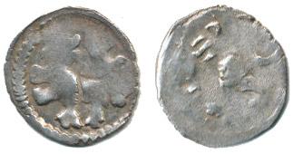 Denár (v perlovci), lev a orlice zády k sobě / sedící pták zleva s roztaženými křídly, SJ.VIII/3, jako Kop.ak/u (Brakteát)_č.ned.