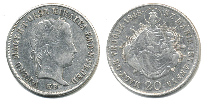20 Krejcar 1848 KB - maďarský opis (revoluce)