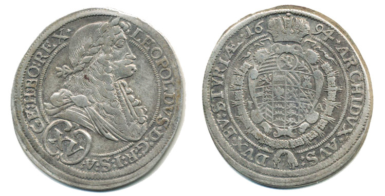 XV Krejcar 1694 I-A, Št.Hradec-Aigmann, Nech.2164, Höll.94.2.1, Her.954