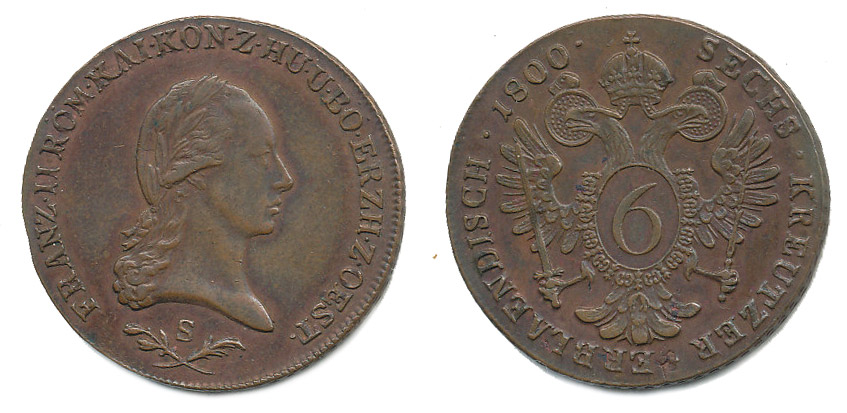 Cu 6 Krejcar 1800 S, minc.Smolník