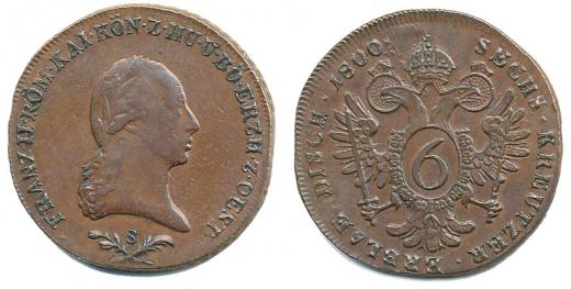 Cu 6 Krejcar 1800 S, minc.Smolník