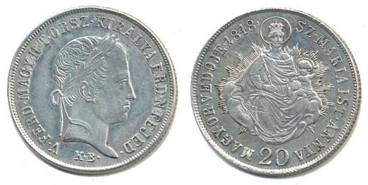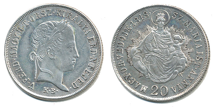 20 Krejcar 1848 KB - maďarský opis (revoluce)