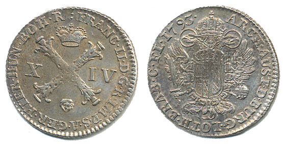XIV Liard 1793, Nizozemí-Brusel, P.39, Her.1016_tém.