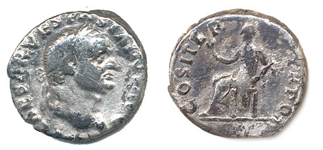 AR Denár, Rv:"TR.POT.COS.ITCP, sedící Pax zleva, S.680pod., C.366_R!