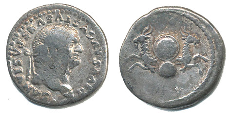 AR Denár (posmrtný), Rv: 2 kozorozi zády k sobě, S.711, RIC.63(Titus), C.497_R!