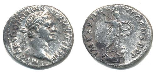 AR Denár, Rv:"IMP.XXII.COS.XVI.CENS.P.P.P.", stojící Minerva zprava, S.797, C.280_dr.skvr.