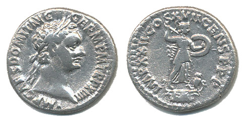 AR Denár, Rv:"IMP.XXII.COS.XVII.CENS.P.P.P.", stojící Minerva zprava, S.797pod.
