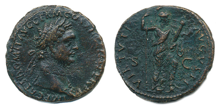AE Dupondius, Rv:"VIRTUTI.AVGVSTI. S.C.", stojící Virtus zprava, S.809, C.659