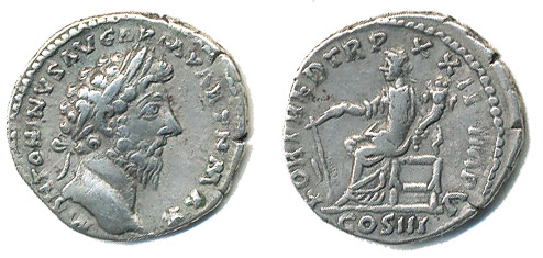 AR Denár, Rv:"FORT.RED.TRP.XXII.IMP.V.COS.III." sedící Fortuna zleva S.1311pod., RIC.135