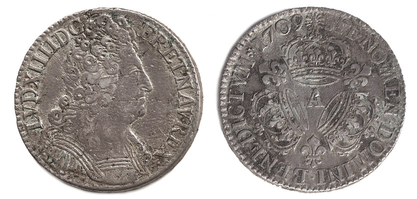 1/2 Ecu 1709 A, Paříž, KM.382.1, Gad.199_st.koroze , dr.škrce v av.