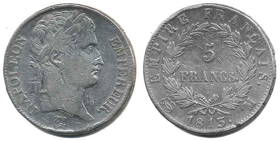 5 Frank 1813 M, Toulouse, KM.694.10, Cr.165.9_dr.škrce, dr.hry