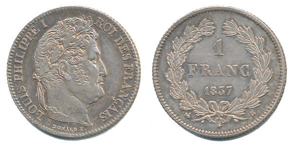 1 Frank 1837 B, Rouen, Y.201.2, KM.748.2_tém.