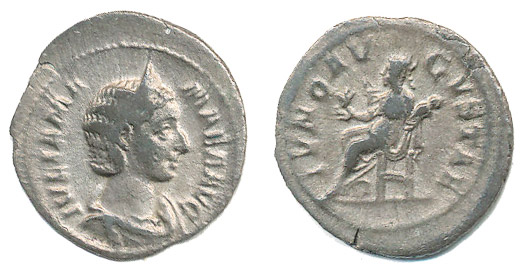 AR Denár, Rv:"IVNO.AVGVSTAE",sedící Juno drží květinu a dítě v peřince, S.2209, C.32, Ka.4