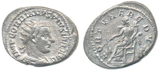AR Antoninianus, Rv:"FORTUNA REDUX", sedící Fortuna zleva S.2335, C.97_oválný střížek