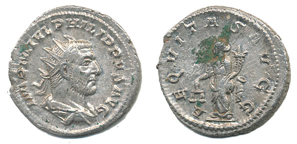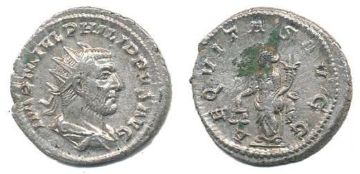 AR Antoninianus, Rv:"AEQVITAS.AVGG.", stojící Aequitas zleva S.2451, C.9, RIC.27b - mincovna Řím - ražba z let 244 - 247