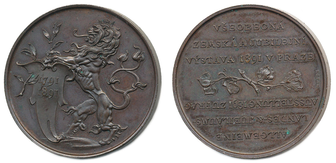 Braun - Záslužná medaile pro vystavovatele#Br Český lev s praporcem / Lipová a dubová ratolest, český a německý nápis, Sign., Bronz 44 mm, ŠFP.17c