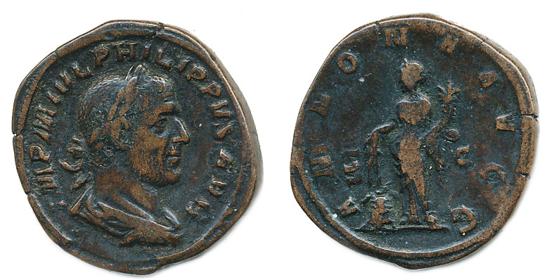 AE Sestercius, Rv:"ANNONA.AVGG.S.C.", stojící Annona zleva S.2491, RIC.168a - mincovna Řím - ražba z let 244 -249, C.26, K.42