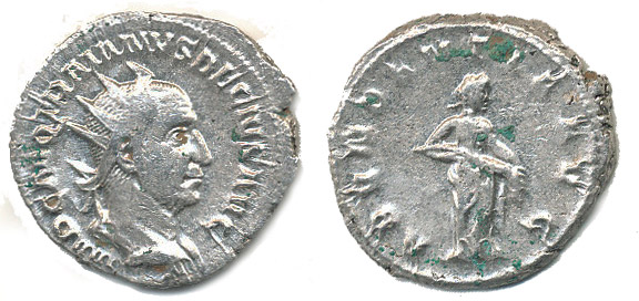 AR Antoninianus, Rv: "ABVNDANTIA.AVG", stojící Abundatia zprava, S.2590, C.2, RIC.10b