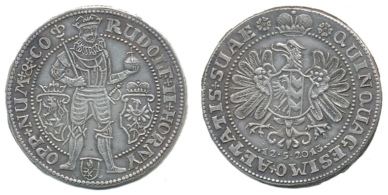 Rudolf Horný - žeton k jubileu 50 let věku, 12.5.2013 Stojící korunov.postava panovníka, opis / uprostřed orlice se štítkem na prsou, opis, Sign.ZK (Z.Kaleta), Ag 31 mm, 6,75 g, MF.D70/1b