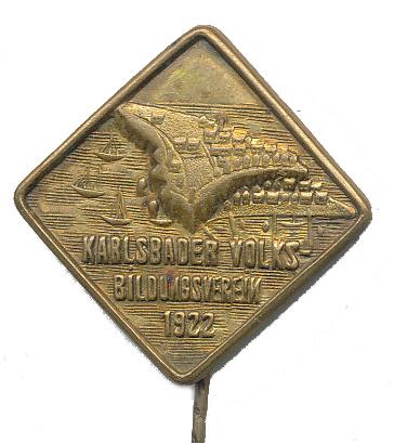 Karlovy Vary (Karlsbad) - karlovarský lid - vzdělávací spolek 1922 Žlutý plech.kosočtverec 21x21 mm_s jehlou