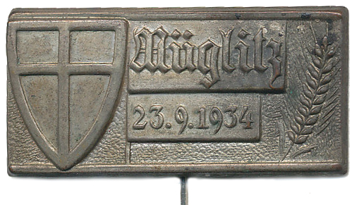 Mohelnice (Müglitz) - štít řádu něm.rytířů 23.9.1934 Bílý plech 20,5x41,5 mm_s jehlou