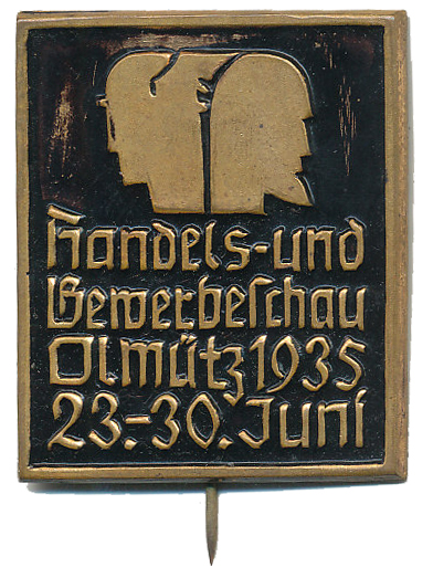 Olomouc (Olmütz) - obchodní a živnostenská výstava 23.-30.1935 Dutý bronz černě lakov. odznak 29,5x36 mm_s jehlou