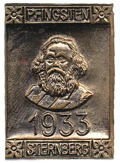Šternberk (Sternberg) - svatodušní slavnost (letnice) 1933 Žletý plech 18,5x26,5 mm_připínací