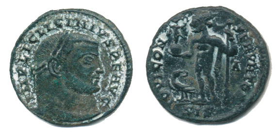 AE Follis, Rv:"IOVI.CONSERVATORI.", stojící Jupiter zleva mince.Siscia, S.3698, C.83, K.132.45