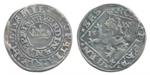 Pražský groš 1547 K.Hora - Lídl-Podivický, Chv.3/bK, Ja.5 Do.1036, Ho.996, MKČ.72_R!