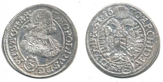 3 Krejcar 1670, Vratislav-Hammerschmidt, Nech.741, MKČ.1624, Her.1539 - var. nominál v ozdobném kruhu, koruna bez stuh_tém.