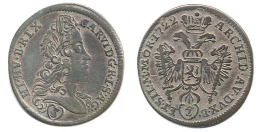 3 Krejcar 1722, Praha-Scharff, J.11c, MKČ.1836, Her.785