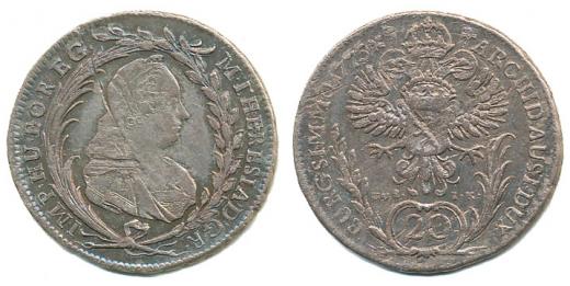 20 Krejcar 1775 EvS - IK, Praha, N.55_dr.just. v av.