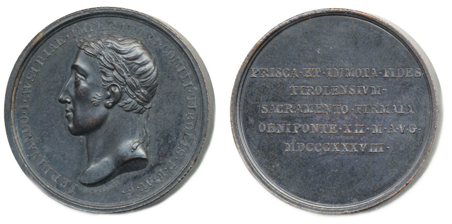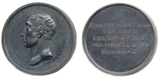F.Putinati - medaile na holdování v Tyrolsku 1838#Br Portrét zleva, opis / 5 řádk.nápis Sign., Bronz 34 mm, Mo.2576, Nov.XVIII/F-1c, LG.XII/321_R! tém.