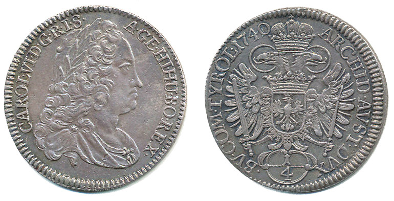 1/4 Tolar 1740, Hall, M-A.240, Her.588v, var. v opisu "V" místo "U" a letopočet upraven ze 1741 na 1740_tém.