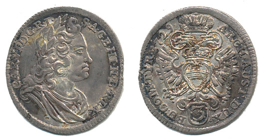 3 Krejcar 1729, Vídeň, M-A229. tab.34/38, Her.716