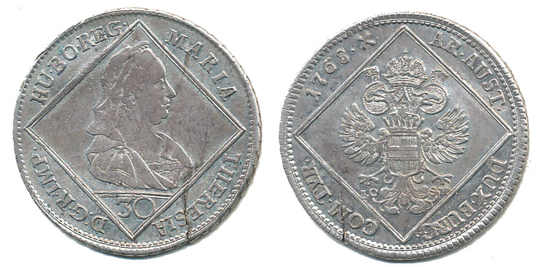 30 Krejcar 1768, IC-SK, Vídeň, N.54, Her.771_naprasklý stř.